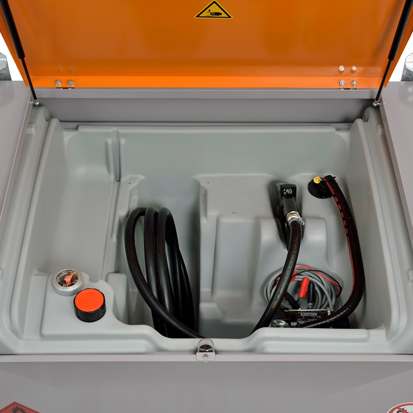 Der mobile Dieseltank fasst 400 l Diesel und eignet sich für den mobilen Einsatz. Er kann schnell und unkompliziert befüllt werden und kann in Gebäuden und im Freien aufgestellt werden.