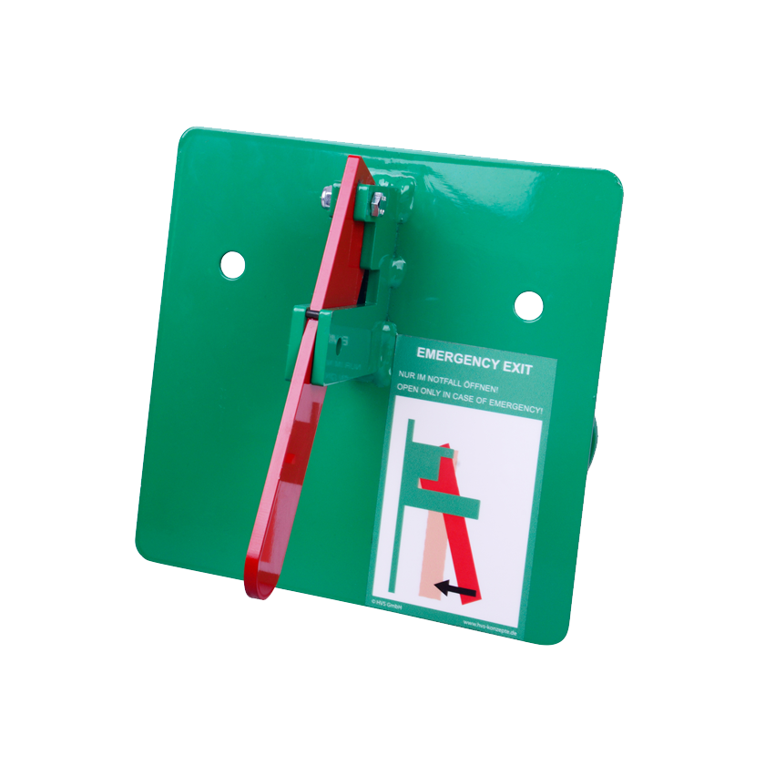 Mittels Schelle wird das Bauzaunschloss an einem Standard-Bauzaun befestigt. Die beiden Rohre des Mobilzauns werden mit Kabelbindern zusammengebunden und anschliessend durch den Riegel gefädelt. Einmal festgezurrt, lässt sich der Kabelbinder von aussen nicht mehr öffnen - der Zutritt zum Gelände ist verschlossen. Dank einem einfach und leichtläufig zu bedienenden Hebel am Türwächter lässt sich der Notausgang im Notfall jedoch in Sekundenschnelle von innen öffnen. Der Bauzaunriegel in den Farben grün / rot ist aus robustem, wetterfestem Stahl.