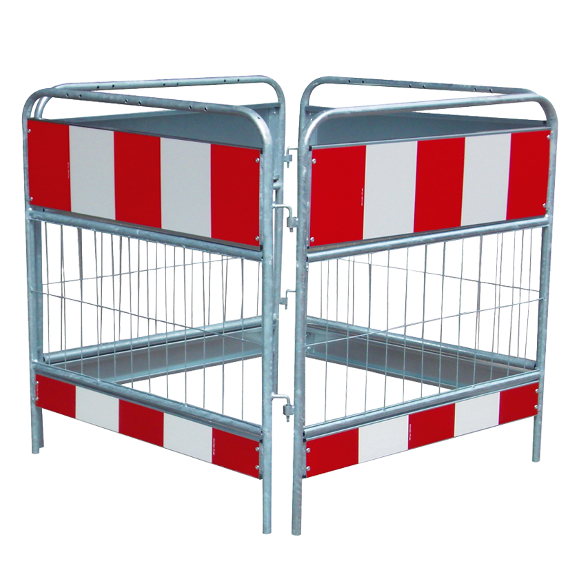 Dieses flexibel einsetzbare Schachtschutzgitter besteht aus vier Gitterelementen mit Scharnieren. Es kann in allen Richtungen/Winkeln aufgestellt werden und ist mühelos versetzbar.