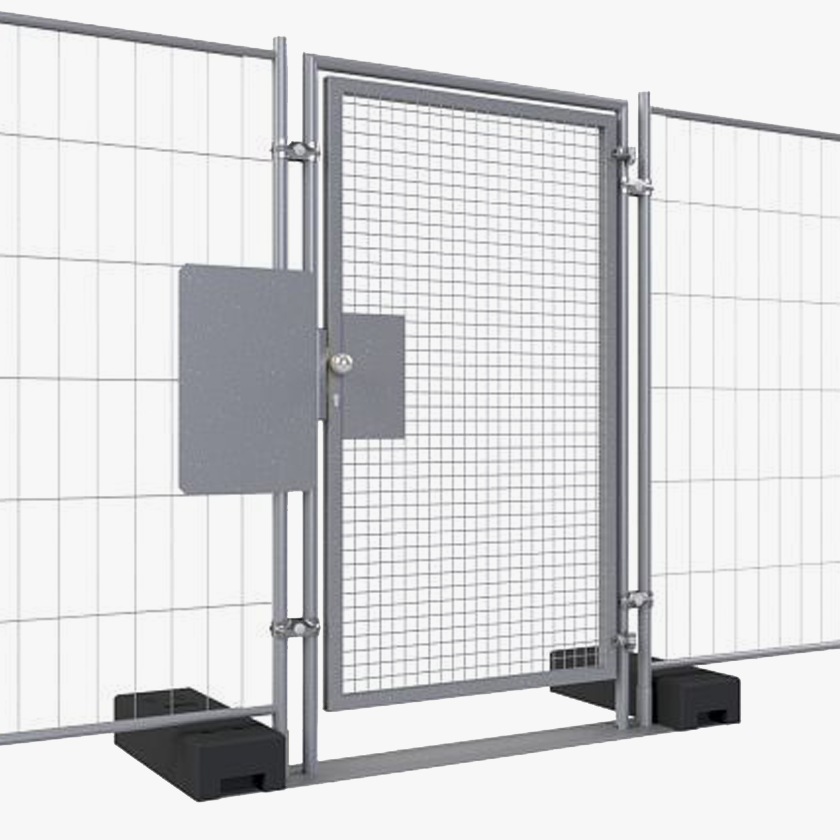 Die Mobilzauntür verfügt über eine stabile Rahmenkonstruktion und sorgt für einen sicheren Ein- und Ausgang. Sie eignet sich ideal für Baustellen und Veranstaltungen mit hohen Sicherheitsansprüchen. Die Tür hat eine beidseitige Klinke und ist mit einem handelsüblichen Schloss (Abus 30/30) versehen.