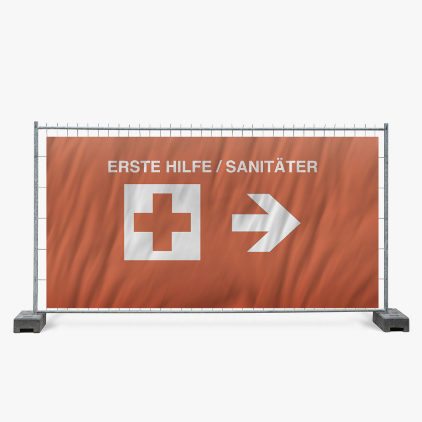 Bauzaunplane Erste Hilfe/Sanitäter-Kennzeichnung Mit Richtungspfeil «rechts»