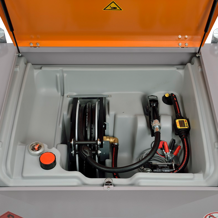 Der mobile Dieseltank fasst 400 l Diesel und eignet sich für den mobilen Einsatz. Er kann schnell und unkompliziert befüllt werden und kann in Gebäuden und im Freien aufgestellt werden.