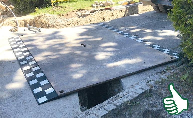 Stahlplatten sind im Strassenbau unverzichtbar, damit Fahrzeuge, Fahrräder und Fussgänger Baustellen-Hindernisse überbrücken können. Bisher wurden Stahlplatten meist durch das Aufschütten von Betonrampen verbaut. Das ist aufwendig und kostenintensiv. Ausserdem verursachen die so verbauten Stahlplatten erheblichen Lärm bei einer Überquerung. Die Lösung heisst FLEYG®.