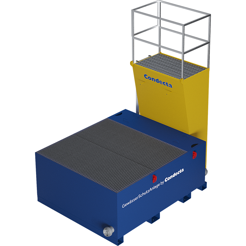 - Plateforme de lavage avec garde-corps de sécurité rabattable, anneaux de levage, poches pour chariot élévateur, grilles amovibles et grand sac filtrant.
