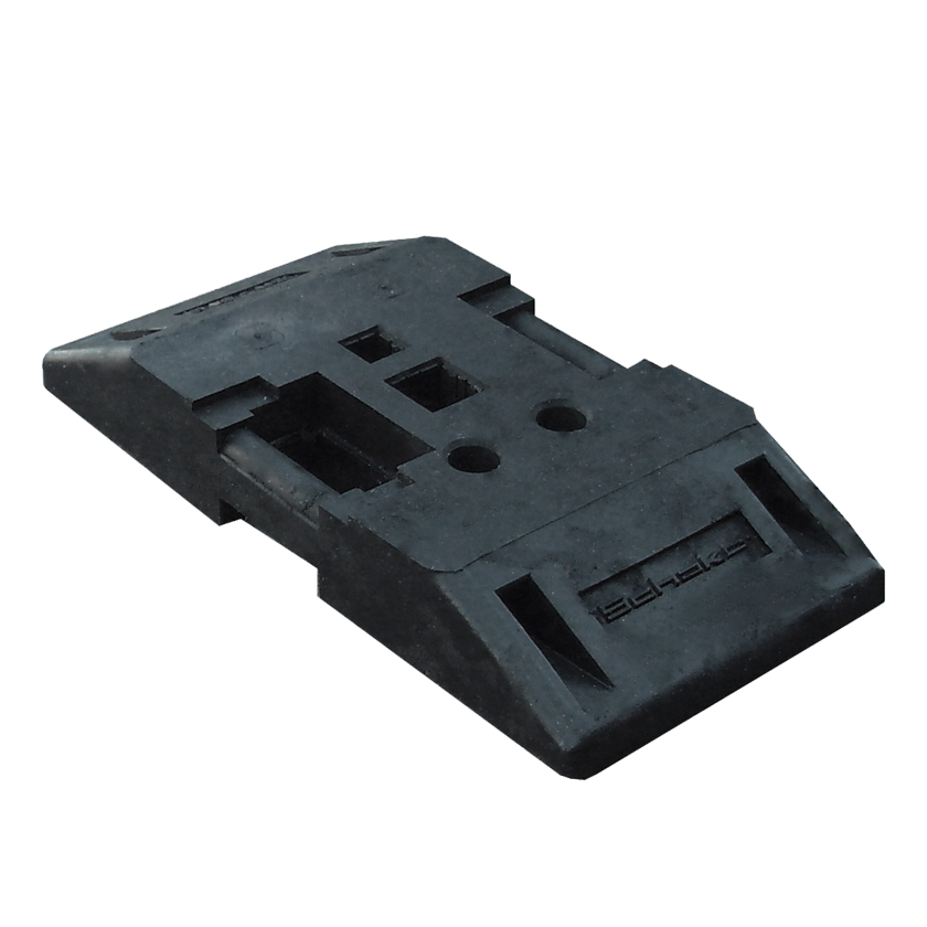 Fussplatte zum Aufstellen von Schrankenzäunen, Schaftrohren, Baken oder Bauzäunen. Aus recyceltem Kunststoff hergestellt, mit seitlichen Tragegriffen für eine praktikable Handhabung.