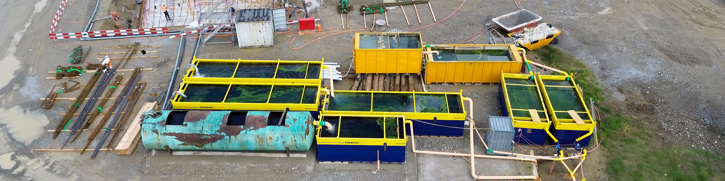 GSA Neutralisationsbecken sorgen für eine Neutralisation des alkalischen Baustellenabwassers und bringen den pH-Wert auf die geforderten, neutralen Werte. Das belastete Baustellenwasser gelangt aus dem Absetzbecken, in dem es von sedimentier- und aufschwimmbaren Inhaltsstoffen befreit wird, in das Neutralisationsbecken, wo eine kontinuierliche Neutralisation des Wassers durch CO2-Eintrag stattfindet.