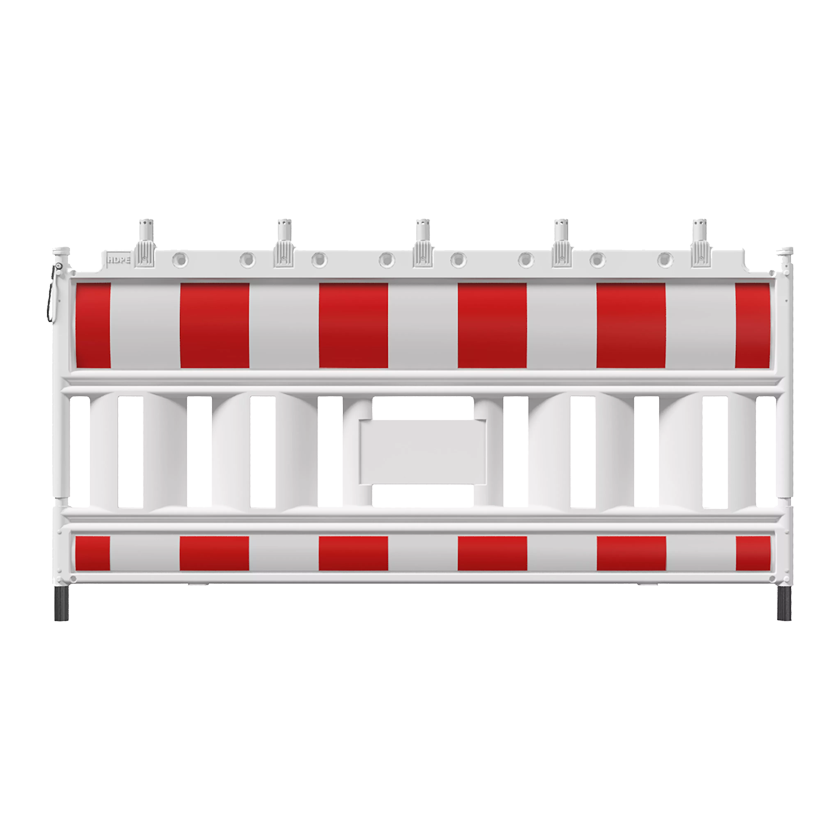 Absperrschrankengitter aus Kunststoff für den vielseitigen Einsatz auf Baustellen, Werkhöfen, Firmenparkplätzte etc. Die minimale Windangriffsfläche sorgt für hohe Stabilität. Die Kunststoffschranken mit hochreflektierender RA2-Folie sind schlagfest, UV-beständig und langlebig.