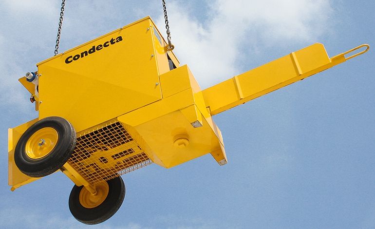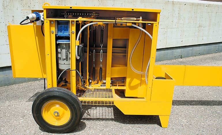 Die Transportwalzen brechen die gröberen Betonrückstände. Durch die vertikale Arbeitsweise fallen die Betonteile direkt auf den Boden und die Stirnmesser sorgen für eine allseitige und umfassende Reinigung der Schaltafeln.