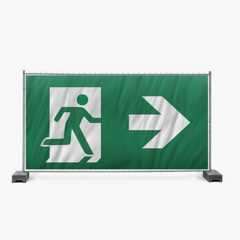 Bauzaunplane Notausgang mit Richtungspfeil «rechts»